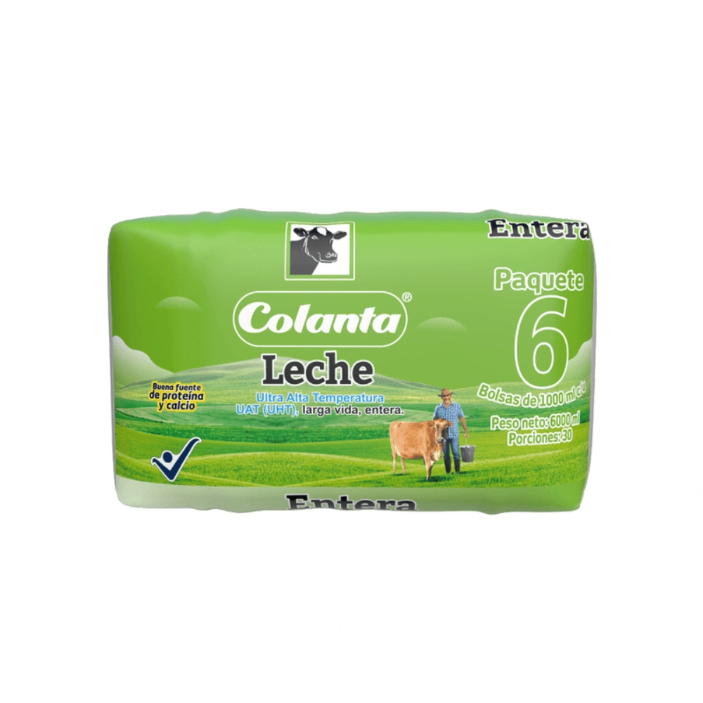Paquete de leche UHT entera Colanta en bolsa de 1000 ml X 6 U