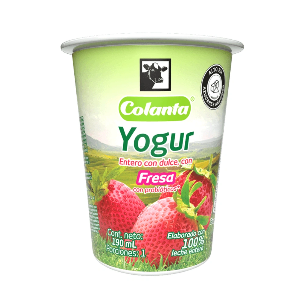 Producto elaborado con leche entera pasteurizada, homogenizada, azúcar, fruta, colorantes, saborizantes permitidos y cultivos probióticos. Fermentado por la acción del cultivo láctico específico para obtener las características propias de textura y acidez.